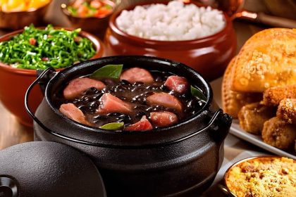 Feijoada é um guisado de feijão com carne, geralmente acompanhada com arroz.