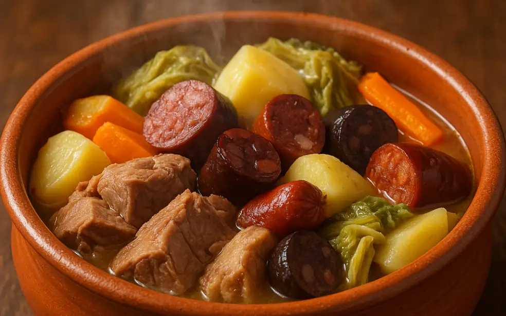 O cozido à portuguesa é um prato tradicional que inclui uma variedade de carnes (vaca, porco, galinha), enchidos (chouriço, morcela, farinheira), legumes (batata, cenoura, nabo, couve) e às vezes arroz.