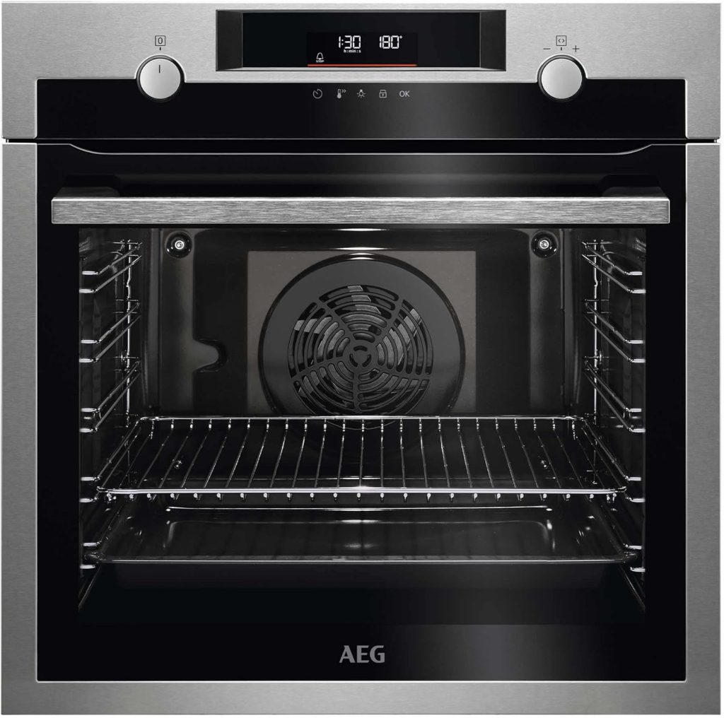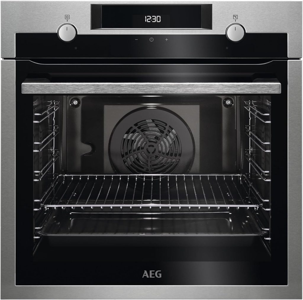 7 – AEG BES33111M Forno multifunções com função de limpeza AquaClean, 9 funções, cozedura uniforme, ventilador XXL, relógio eletrónico comandos, anti-impressões digitais, bandeja XXL, nox, classe A, 72 [Classe energética A]