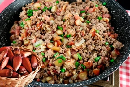 A paçoca de pinhão com carne assada é uma criação que envolve técnicas ancestrais e uma fusão de sabores cuidadosamente equilibrada. O pinhão, extraído dos pinheiros araucárias, é cozido até atingir a textura ideal para ser transformado em farinha, base da paçoca. Esse processo confere um sabor característico e uma consistência única à preparação.